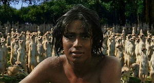 Le générique de L’Odyssée de Pi nous introduit dans un parc enchanté où cohabitent pacifiquement toutes sortes d’animaux, tous plus merveilleux les uns que les autres. Ce zoo exotique est un véritable paysage paradisiaque où règne cette tolérance qui imprègne la civilisation indienne. Ce n’est pas par hasard si cette présentation se conclut avec une statue de Ganesh, le dieu à tête d’éléphant sous la protection duquel on se place avant d’entreprendre quoi que ce soit. Même si ce monde reste soumis au karma et, comme ce varan piétiné, à la mort.
